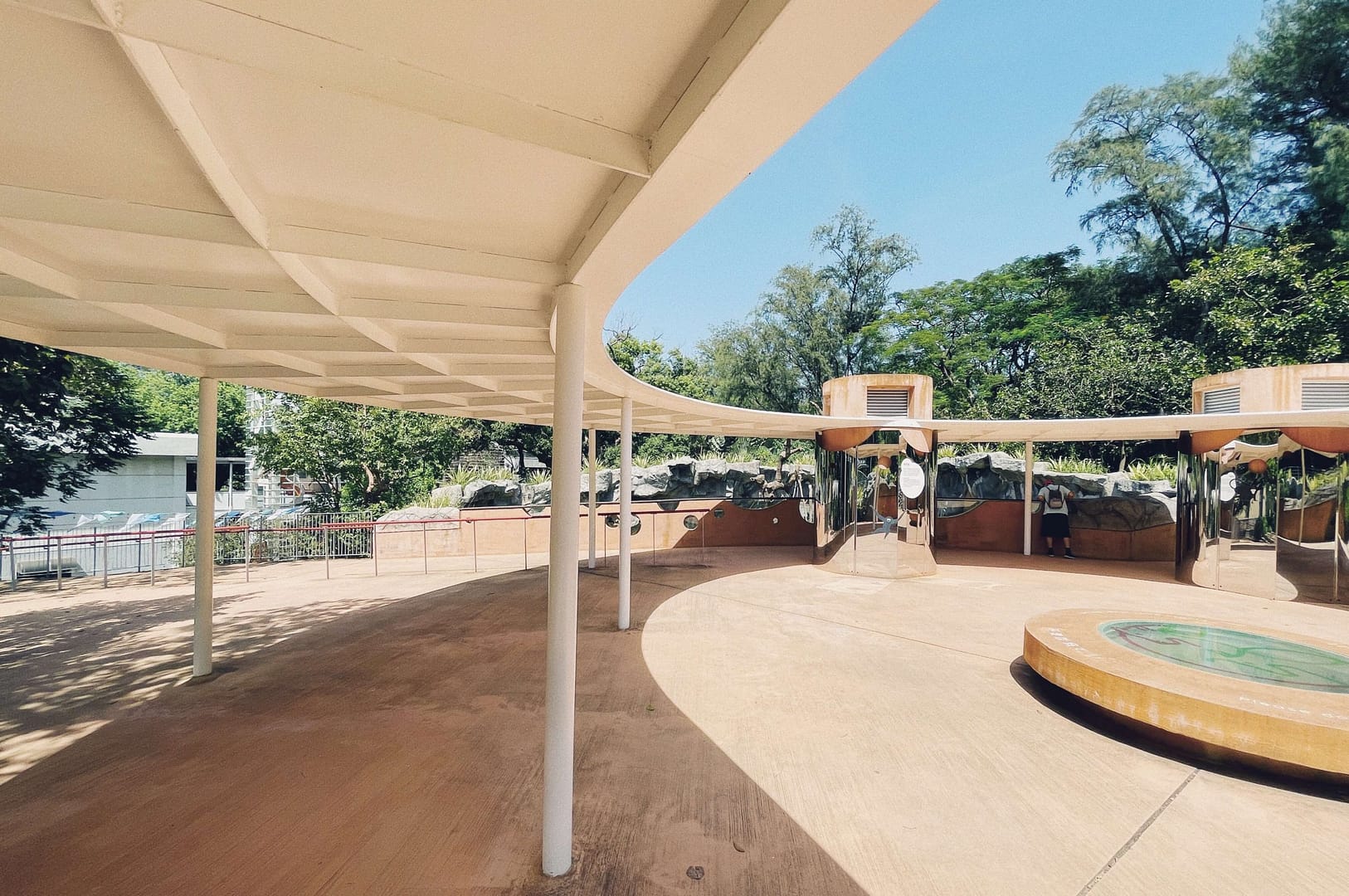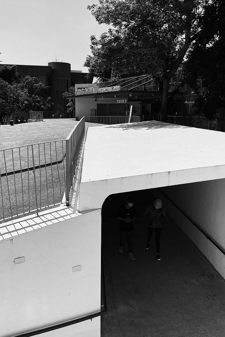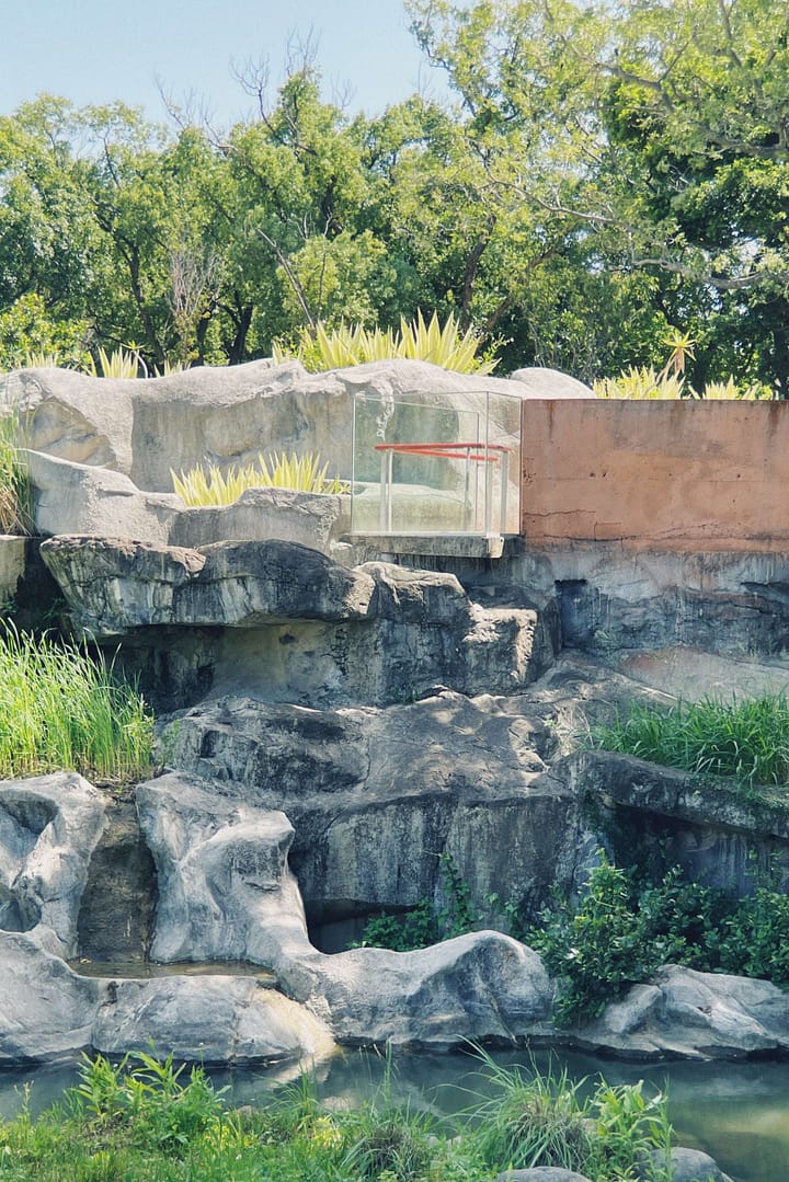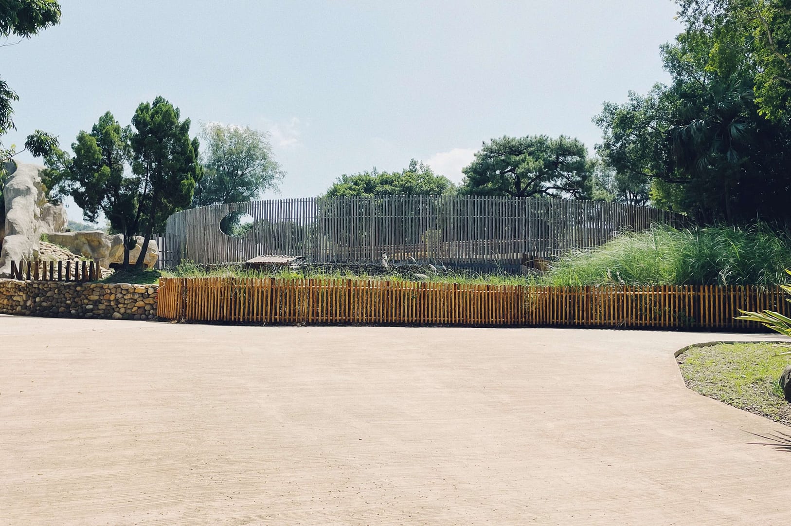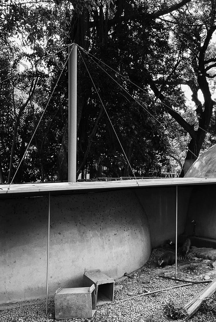 Hsinchu Zoo is the first zoo of Taiwan. It ties together the past one hundred years of history with the next hundred years of modern architecture.The interface between the city and the zoo illustrates the coexistent relationship between the two. There is a ninety-meters long and six-meters tall double-layered mesh wall, X1 between the plaza and the main entrance of the zoo. The structure functions as a boundary to separate the two entities, but the wire mesh provides certain transparency of the world beyond. X2 is the wood-post wall surrounding the circle plaza. The wall appeares to enclose visitors in an animal cage, raising the question whether the animals or the visitors are the objects being viewed?