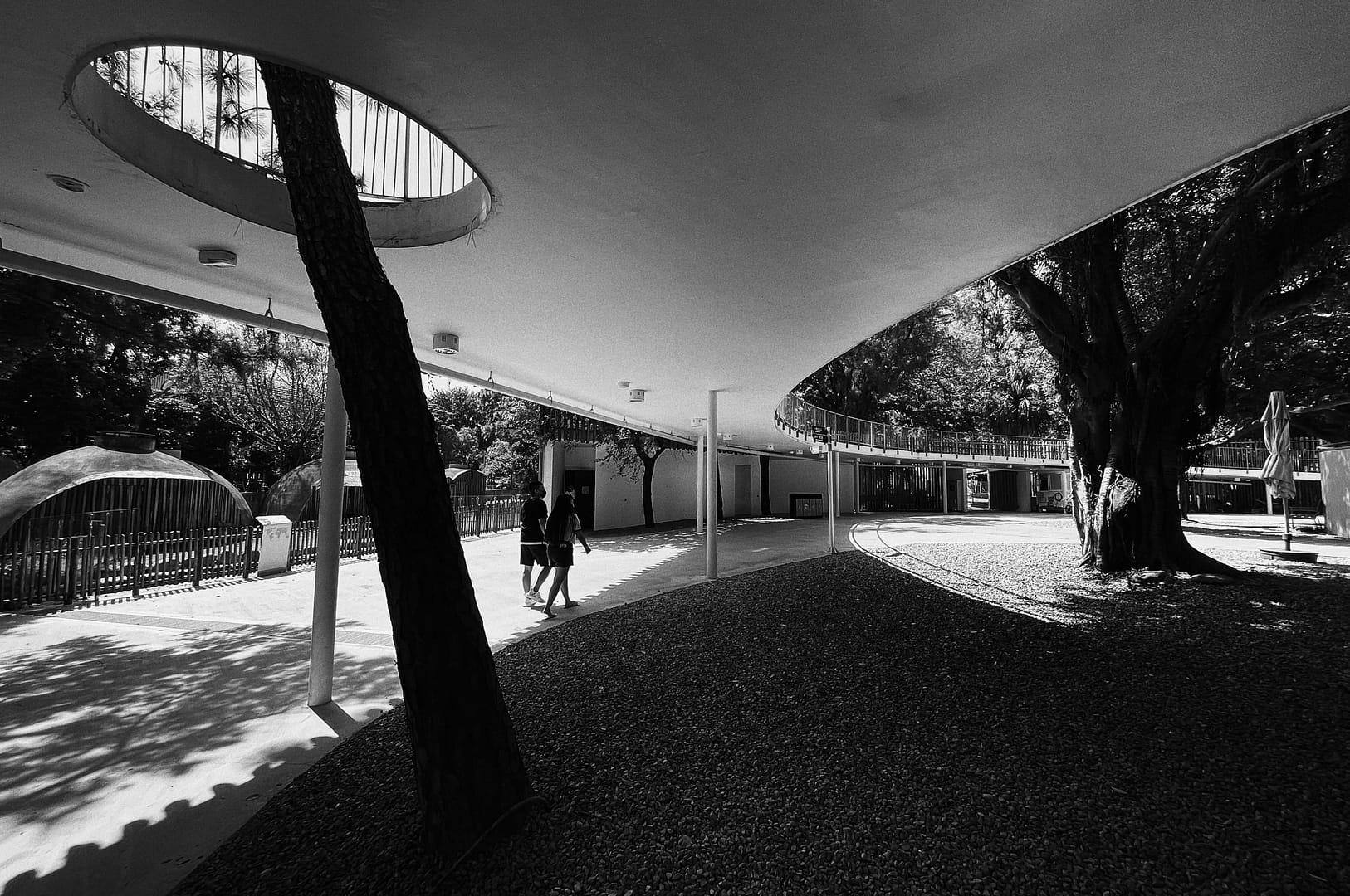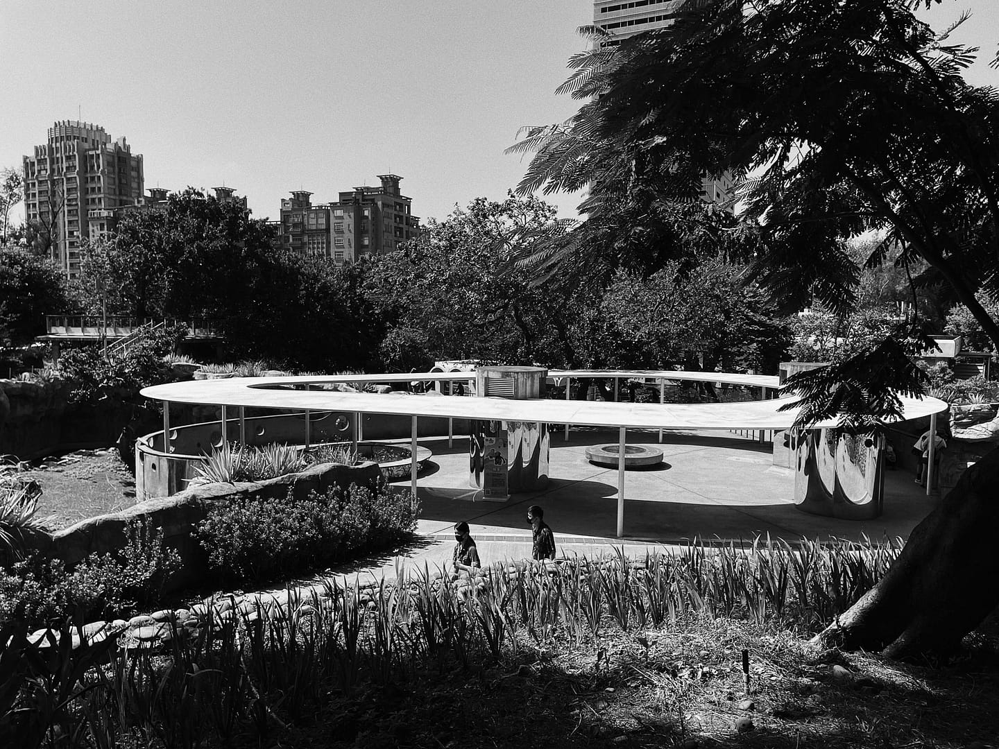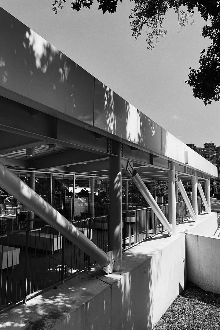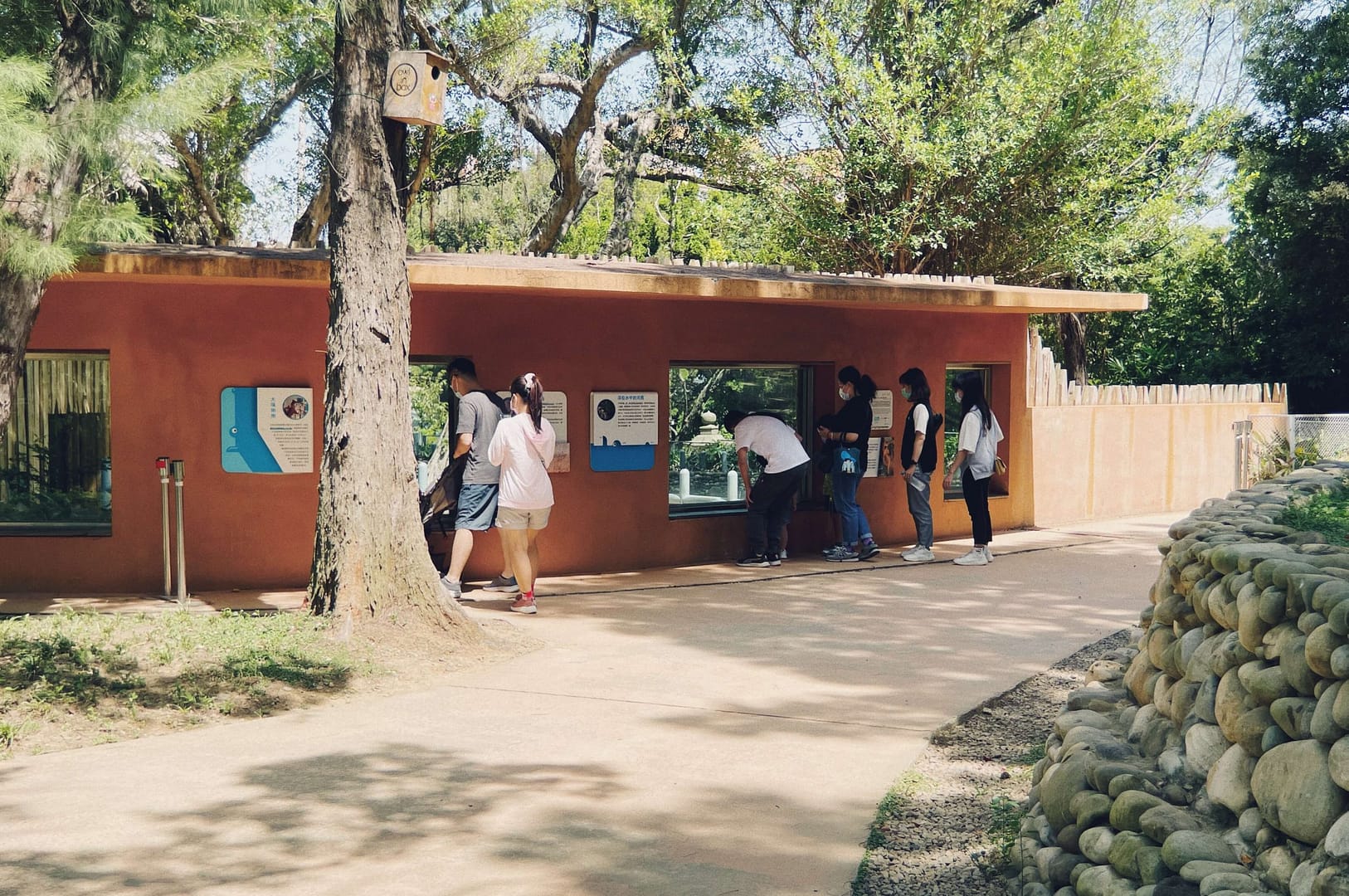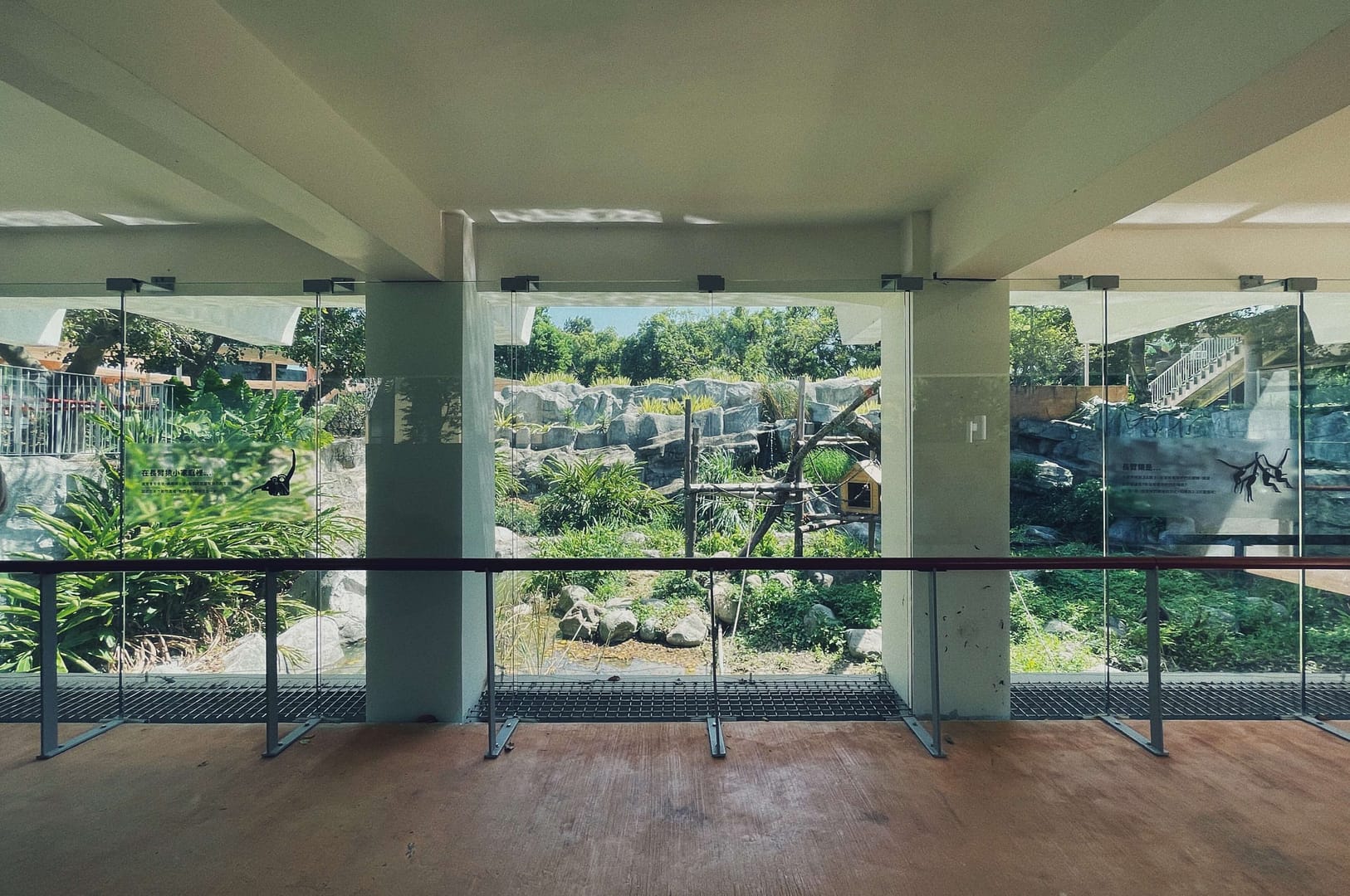 Hsinchu Zoo is the first zoo of Taiwan. It ties together the past one hundred years of history with the next hundred years of modern architecture.The interface between the city and the zoo illustrates the coexistent relationship between the two. There is a ninety-meters long and six-meters tall double-layered mesh wall, X1 between the plaza and the main entrance of the zoo. The structure functions as a boundary to separate the two entities, but the wire mesh provides certain transparency of the world beyond. X2 is the wood-post wall surrounding the circle plaza. The wall appeares to enclose visitors in an animal cage, raising the question whether the animals or the visitors are the objects being viewed?