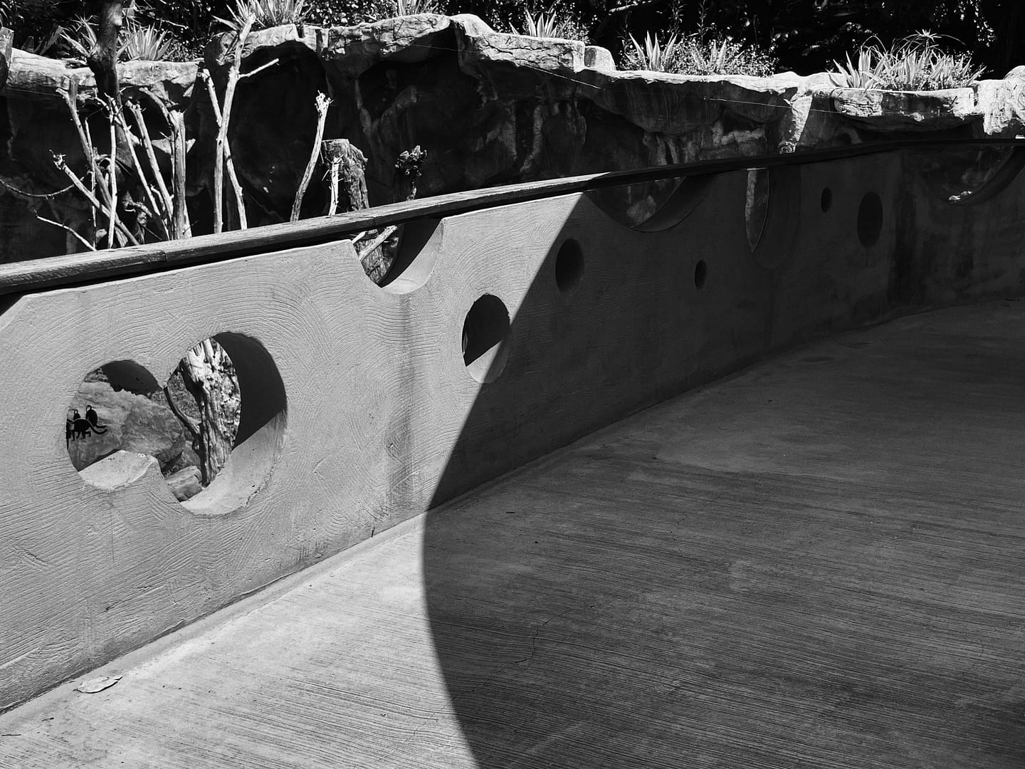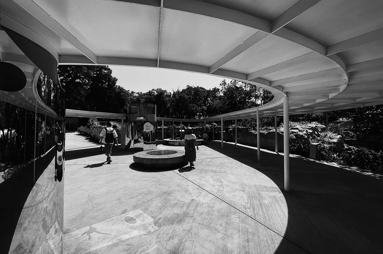 一道九十米長被雙層金屬網所包覆的輕鋼構空間桁架,形成一道模糊的介面,區隔出都市與動物園的邊界,透過這層介面也隱約暗示著牆後動物園的世界。輕鋼構橫跨入口區的各式空間,也衍伸出眾多結構型態的變形:懸臂的動物園招牌(XA)、動物園入口延伸的雨遮(XE),餐廳的挑高 (XG),甚至是遇到既有樹木退縮變窄(XJ)。這是一道順應機能與大自然而變形的有機牆面;是都市與動物園之介面(X1)。