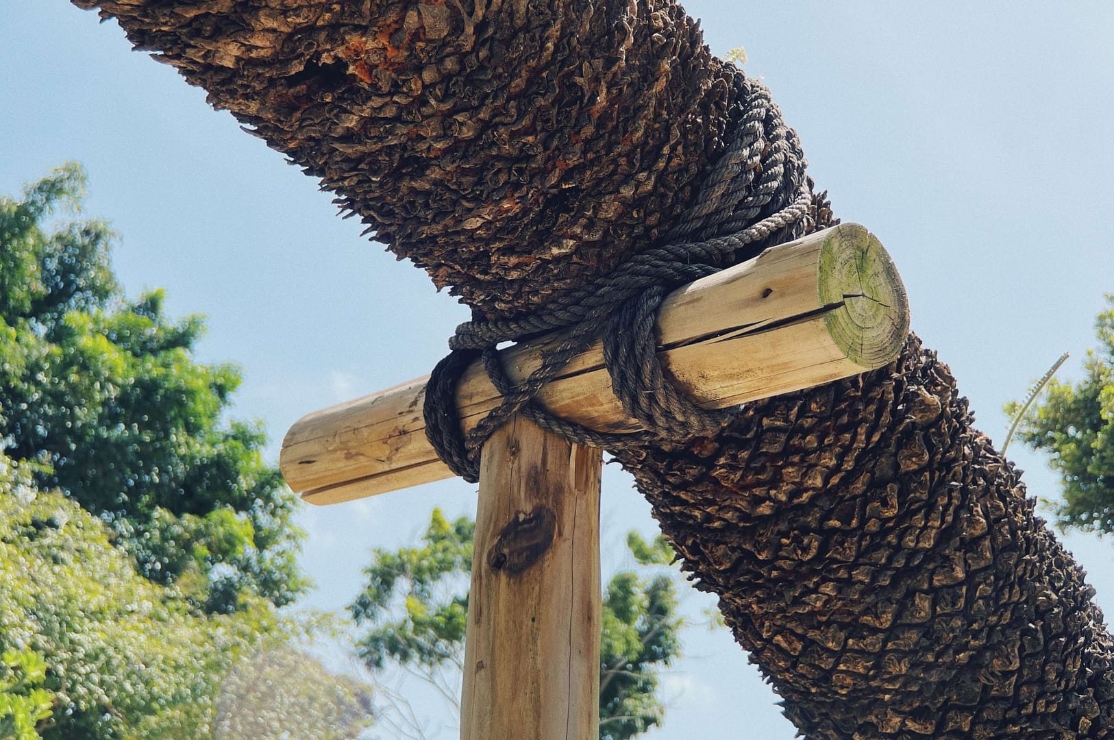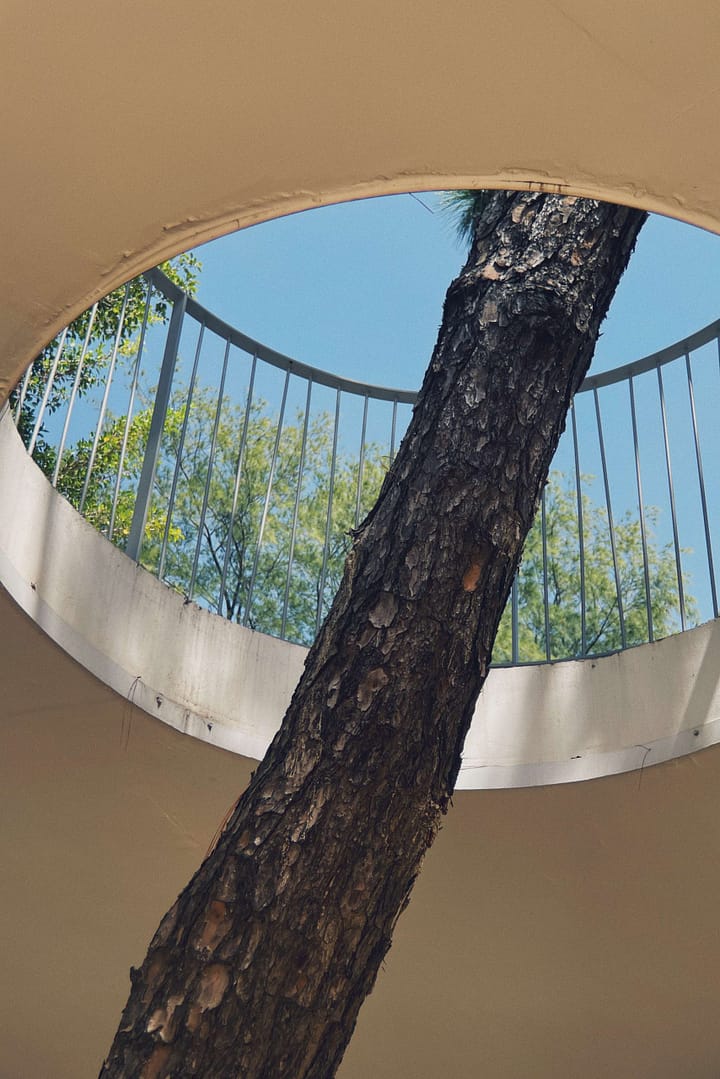 都市的人們穿越第一層介面(X1)之後,經由空橋飛越動物園本身,並透過圓形的坡道緩緩於動物園的中心落地,而一根根的木樁劃分出人與動物的邊界。從空中往下看人類更像是被圈養起來的動物,透過木樁的虛虛實實與坡道的高低變化,造成視覺的變化,在圓形廣場內偶爾聽到動物的吼叫、聞到牠們的氣味,與間接感受到的外在環境。穿過木樁牆兩側的大門,開始要參觀動物園時,地面材料從透水混凝土轉換成橘紅色的大地色鋪面,暗示著即將進入動物的世界。