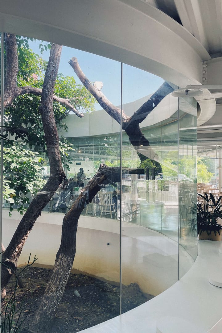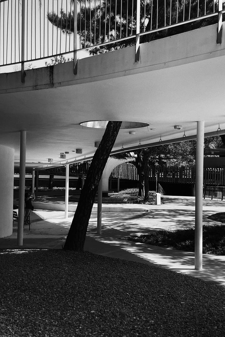 The ninety meters long double-layered mesh structure, X1, functions as a blurring boundary which separates the two entities A and B. As the wall extends across the entrance into the zoo, it evolves into different structural variations when intersecting different natural conditions, programs and functions. These include: cantilever for signage XA, extension for entrance canopy XE, double-height for restaurant XG, and set-back by the trees XJ.
